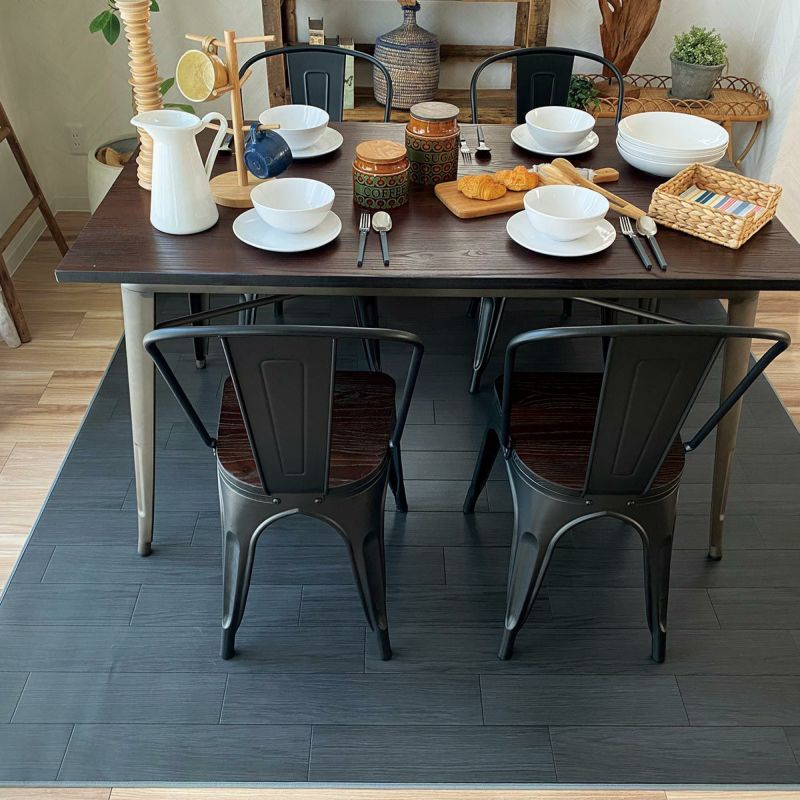 撥水・抗菌・防カビ・防炎加工 クッションフロア ダイニングラグ さっと拭くだけお手入れカンタン!< Chene-シエーネブラック- >182X182~300cm:4サイズ 防炎 抗菌・防臭 販売価格 ¥ 11,110 税込 お気に入りに登録する