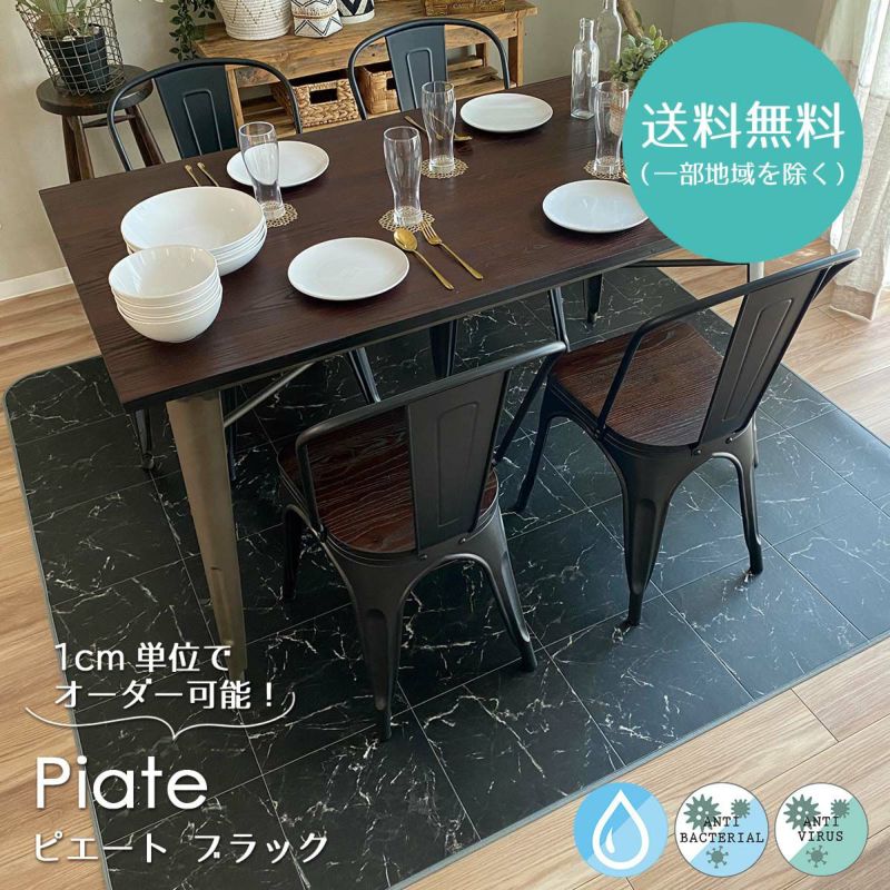 100サイズ選べるクッションフロア!キッチンマットやダイニングラグに最適<Piate -ピエート ブラック->