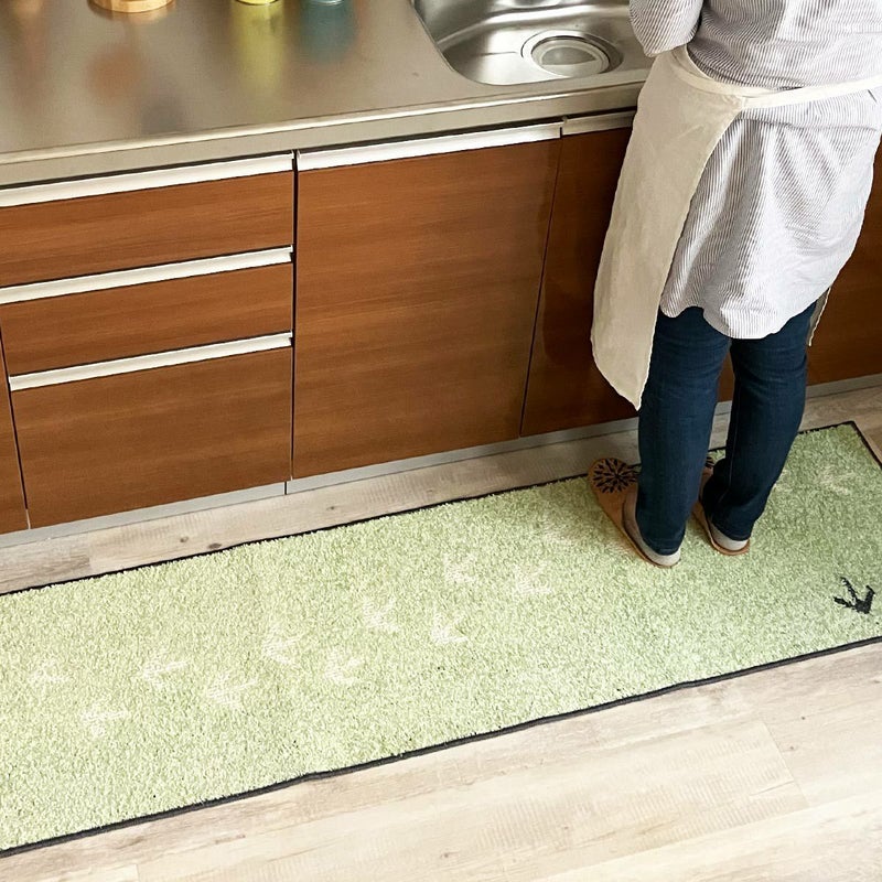 5. キーウィの足跡がかわいい北欧テイストキッチンマット<Kiwi- キーウィ グリーン ->:2サイズ