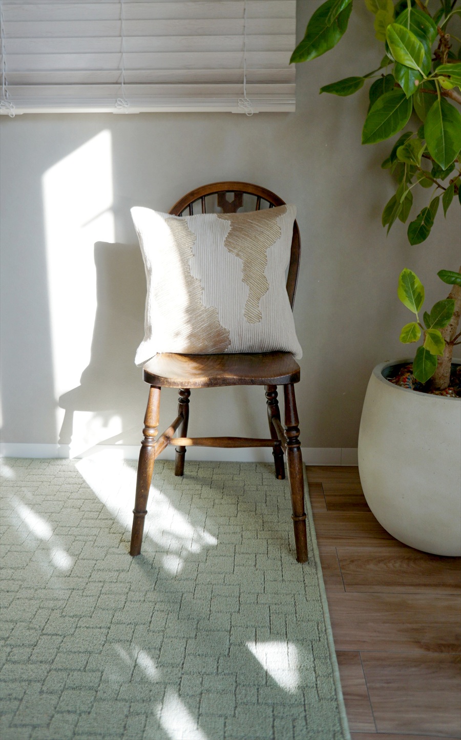 パイルの高さで表現した幾何柄は、いろいろなお部屋に合わせやすいシンプルなデザインです。