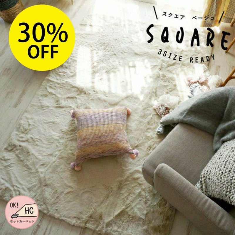 3. ★30%OFF★【ラグモアオリジナル】とろける肌触り、もふもふのエコファーラグ・床暖対応<モッフィー スクエア ベージュ>:3サイズ
