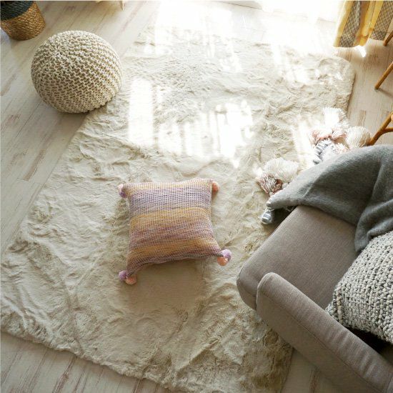 高密度で毛足の長い、ラビットファーのようなもふもふの風合いが特徴のエコファーラグです。