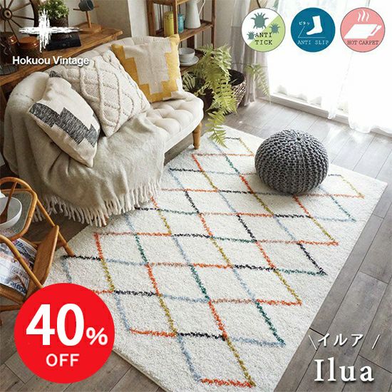 ★約40%OFF★【北欧VINTAGE】手描き感のあるカラフルラインがおしゃれなアーガイル柄ラグ< Irua - イルア - >:130×185cm ※在庫限り