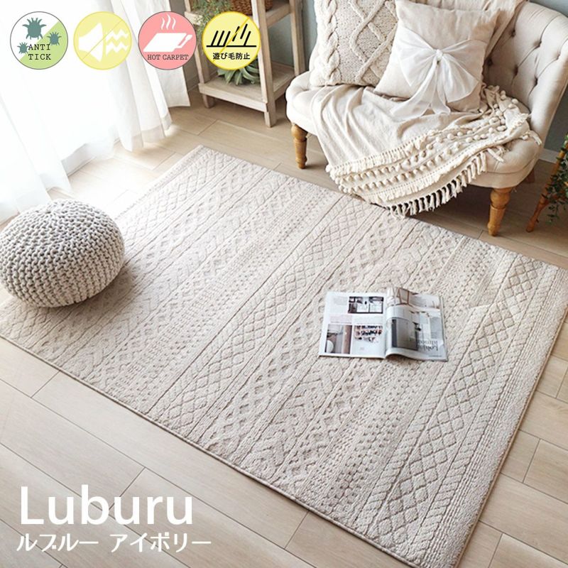 ケーブルニット柄がナチュラルな雰囲気の高機能な国産ラグ<Luburu ルブルー アイボリー>:3サイズ