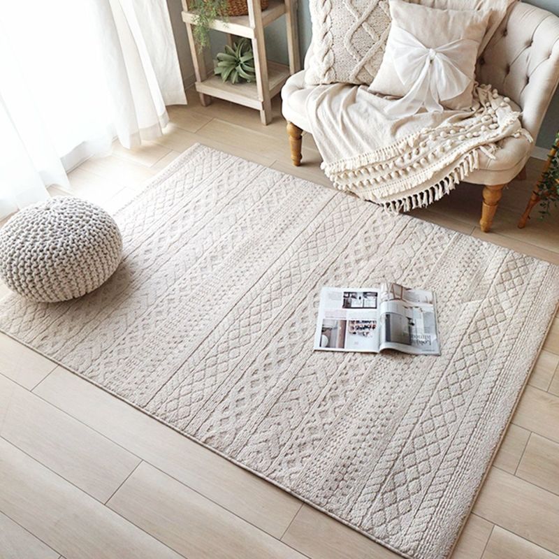 ケーブルニット柄がナチュラルな雰囲気の高機能な国産ラグ。