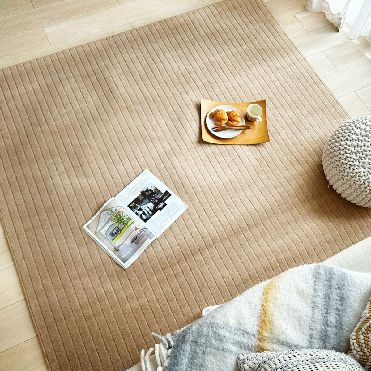 フローリングのように見えてフローリングじゃない、新感覚素材のラグ。