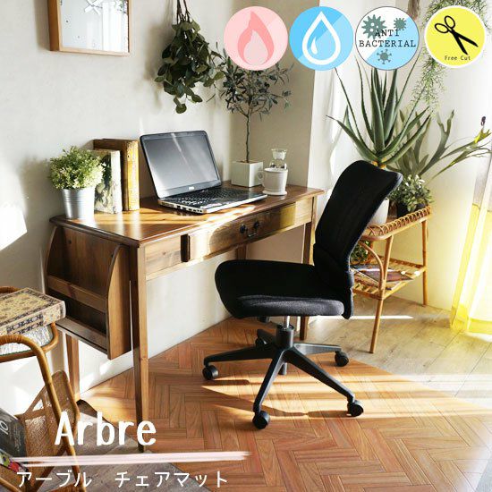 在宅ワークにオススメ!!さっと拭くだけお手入れカンタン!撥水・抗菌・防カビ・防炎加工 クッションフロア デスク用チェアマット < Arbre- アーブル チェアマット - >:4サイズ