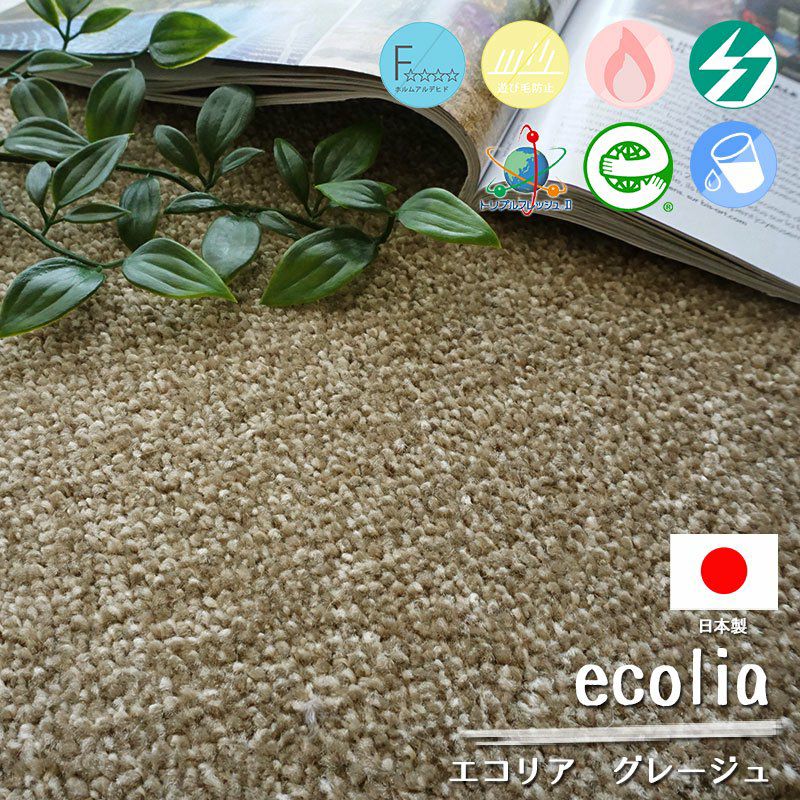 4. 100サイズ選べるオーダーカーペット!消臭機能付き再生ポリエステルを使用したエコラグ<ecolia - エコリア グレージュ>