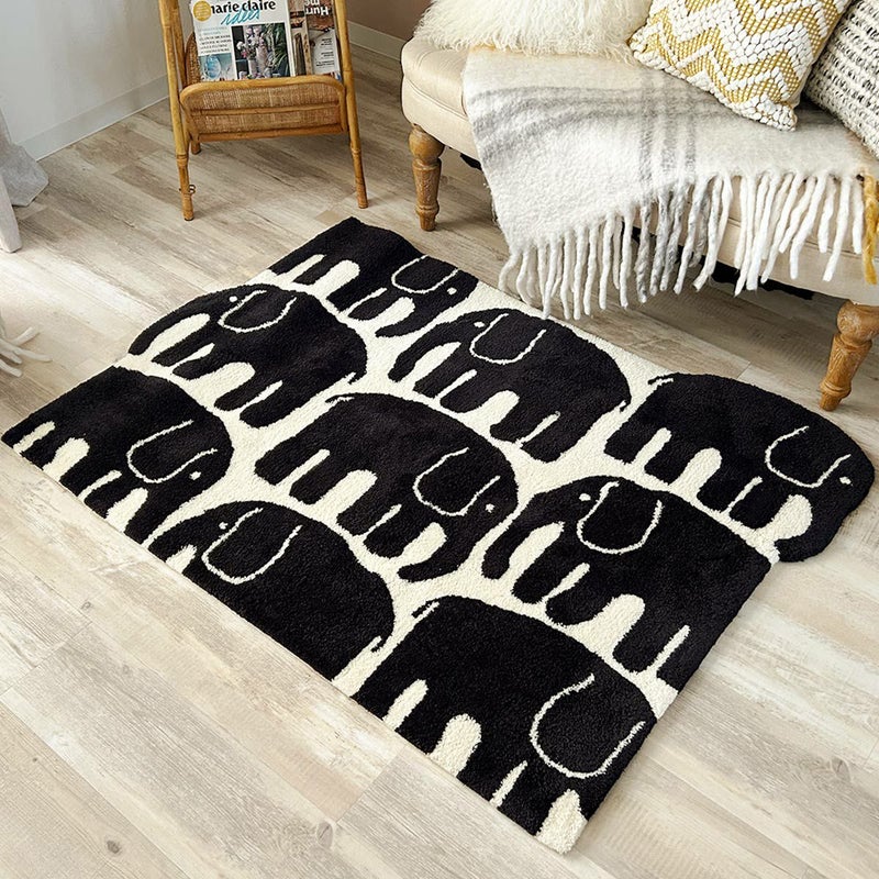 4. 【Finlayson(フィンレイソン)】洗える!おしゃれな北欧デザインラグ<ELEFANTTI エレファンティ  ブラック>:1サイズ