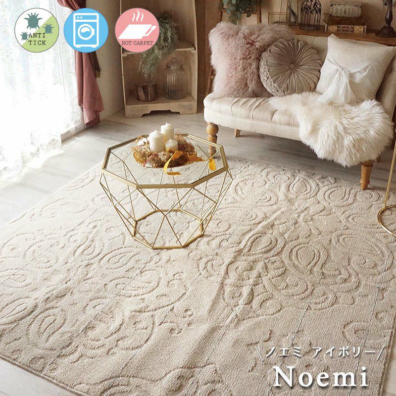 大人気!洗えるオールシーズンタイプ クラシカルデザインのアラベスク柄ラグ<Noemi - ノエミ アイボリー ->:3サイズ