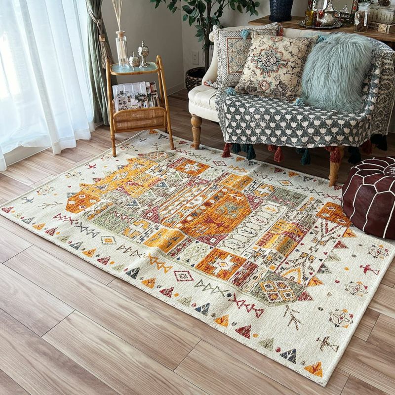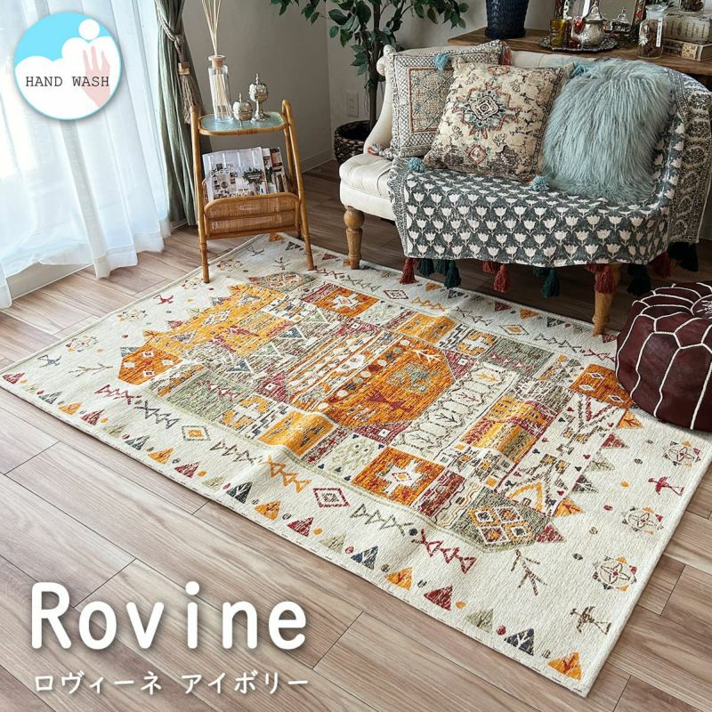 ギャベ風デザインがかわいいゴブランシェニールラグ<Rovine ロヴィーネ イエロー>130×190cm