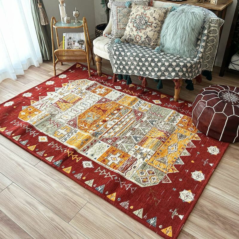 ギャベ風デザインがかわいいゴブランシェニールラグ<Rovine ロヴィーネ イエロー>130×190cm