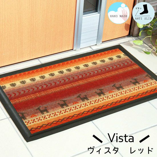 5. 室内でも室外でも使用可能なギャベ柄玄関マット <Vista- ヴィスタ レッド ->2サイズ