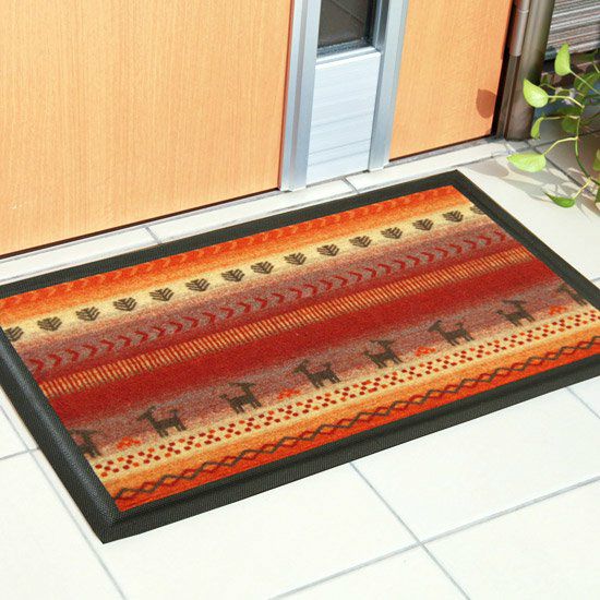室内でも室外でも使用可能なギャベ柄玄関マット <Vista- ヴィスタ レッド ->2サイズ