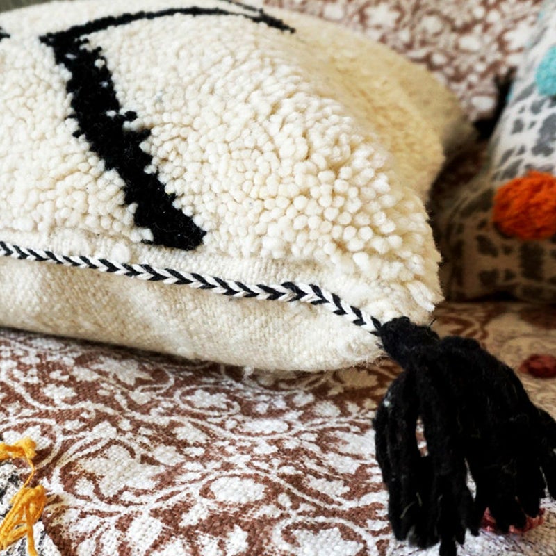 アトラス山脈に生息するモロッコの羊の毛をふんだんに使ったもこもこのハンドメイドクッションカバーです。