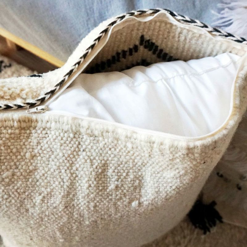 アトラス山脈に生息するモロッコの羊の毛をふんだんに使ったもこもこのハンドメイドクッションカバーです。
