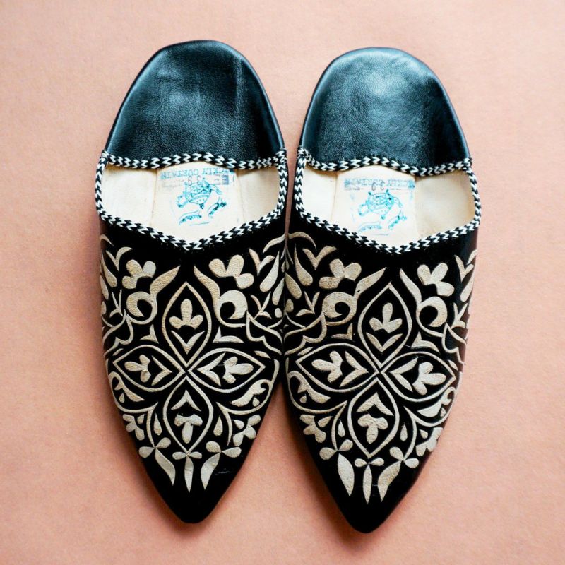 4. patati-patata・おさんぽバブーシュ M・Lサイズ(22~26cm) <カットワーク ブラック>:1セット