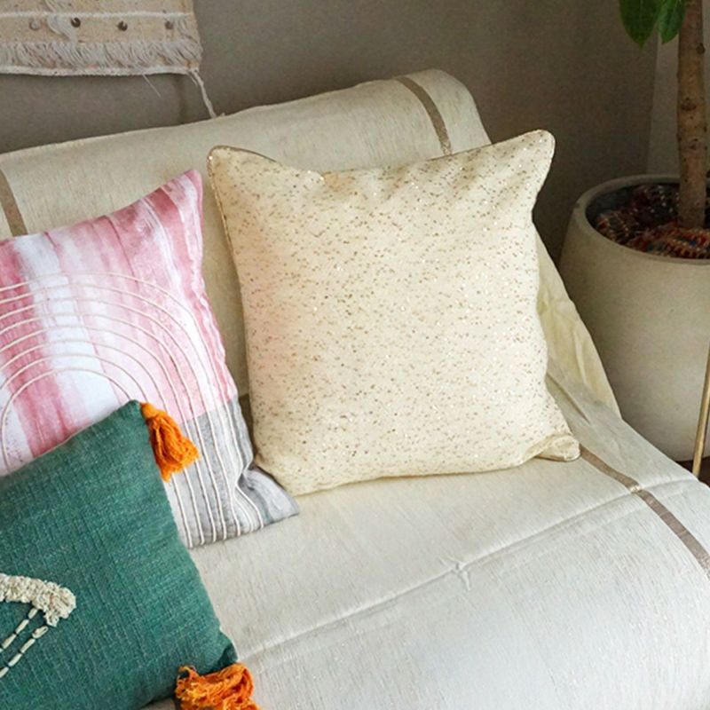 手織りのラグや他のキラキラクッションカバー、エスニックな雰囲気の小物とも相性抜群!