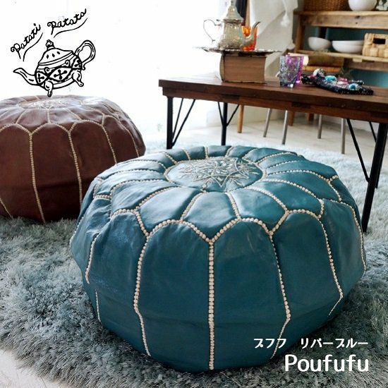 patati patata モロッコから直輸入!山羊革のプフ<プフフ リバーブルー>