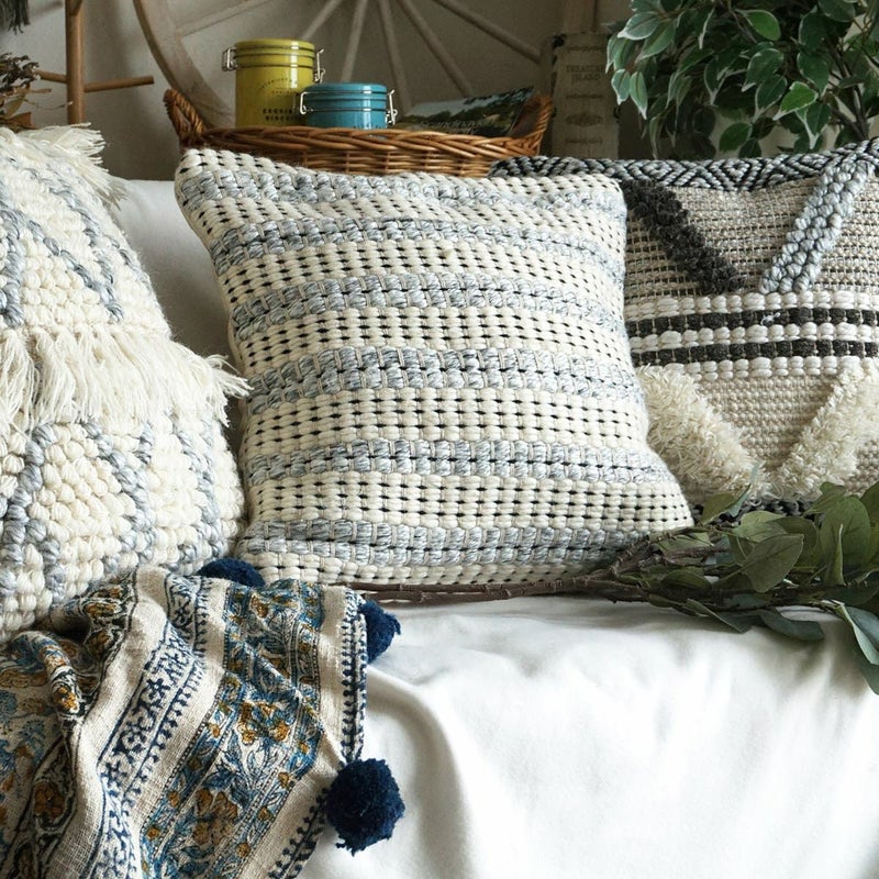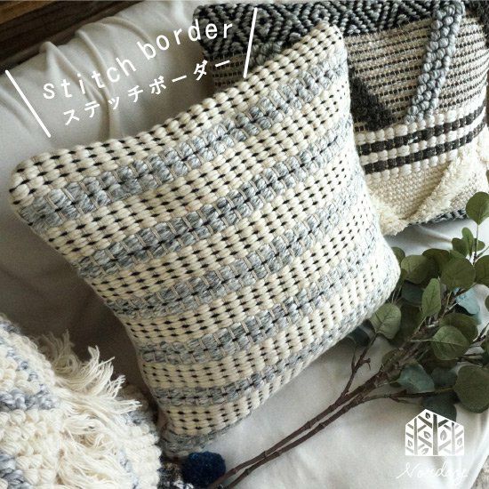 天然素材100%(ウール/コットン)の手織りのクッションカバーはステッチをしたようなシンプルで温かみのあるデザインが北欧コーデにぴったりです!