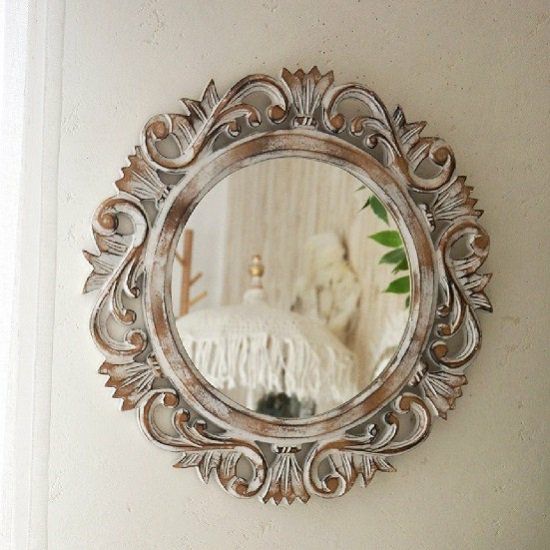 壁を珪藻土でDIYしてシャビーな感じになったのでこちらのミラーが合うかなとデコフレームと一緒に注文させて頂きましたが思った以上にステキで鏡写りも良くとても気に入りました☆ ありがとうございました。