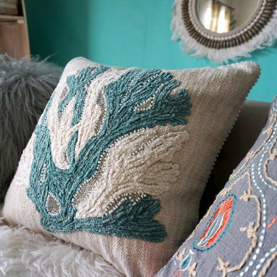 【 Marine & Pier クッション 】 45cmx8cm厚 ヒトデのデザイン・中綿入り・天然素材使用・刺繍・ビーズが魅力のおしゃれなクッション<オトシゴ クッション> 販売価格 ¥ 3,300 税込 お気に入りに登録する