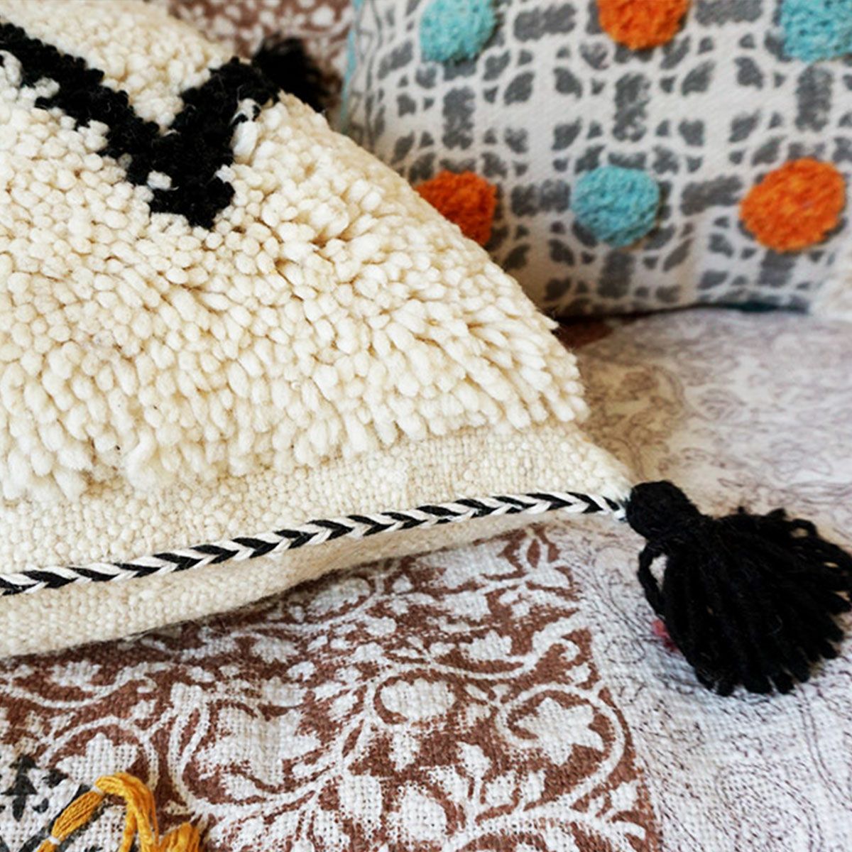 他の画像を見る オリジナル 【HOME SWEET HOME - ホーム スウィート ホーム】 カラフルなブロックプリントがかわいいクッションカバー<block tassel ブロックタッセル>45x45cm ファスナー付き 販売価格 ¥ 3,300 税込 カートに入れる お気に入りに登録する
