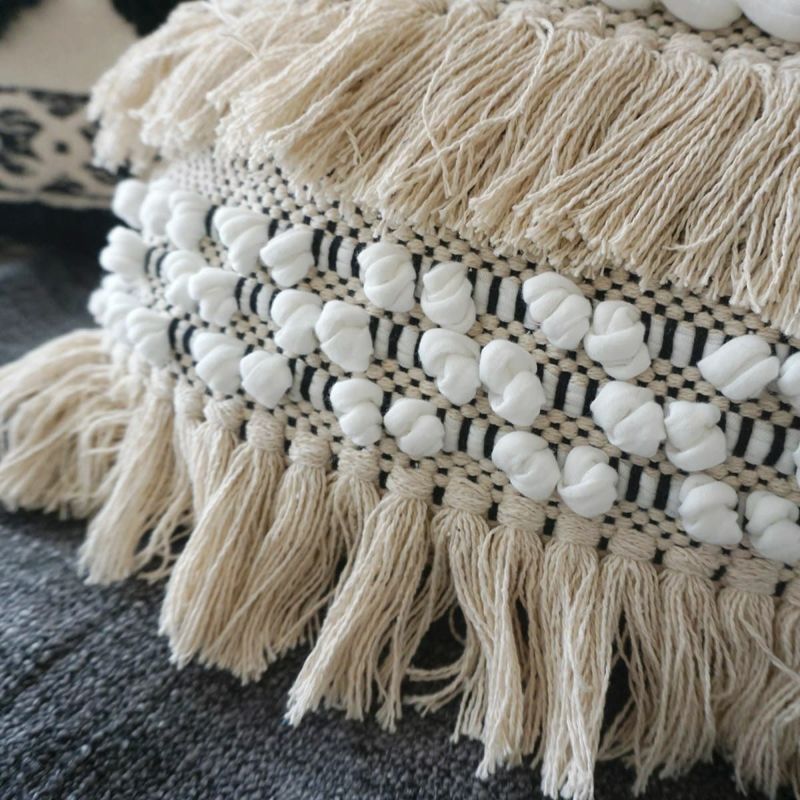 モコモコふさふさしたボーダーが可愛いクッションカバー。