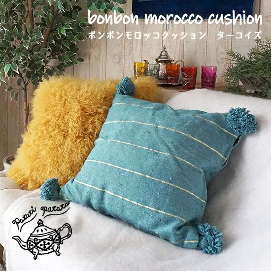 【 patati patata 】 モロッコから直輸入した大きなボンボン付きクッションカバー45x45cm <ボンボンモロッコクッション ベージュ> 販売価格 ¥ 3,080 税込 お気に入りに登録する