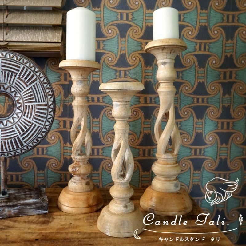 【NOTOSGLYPH -ノトスグリフ-】バリ島で手作りされたウッドキャンドルスタンド<タリ>3サイズ