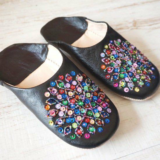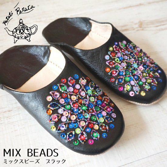 4. patati-patata・バブーシュ M・Lサイズ(22~26cm) <ミックスビーズ ブラック>:1セット