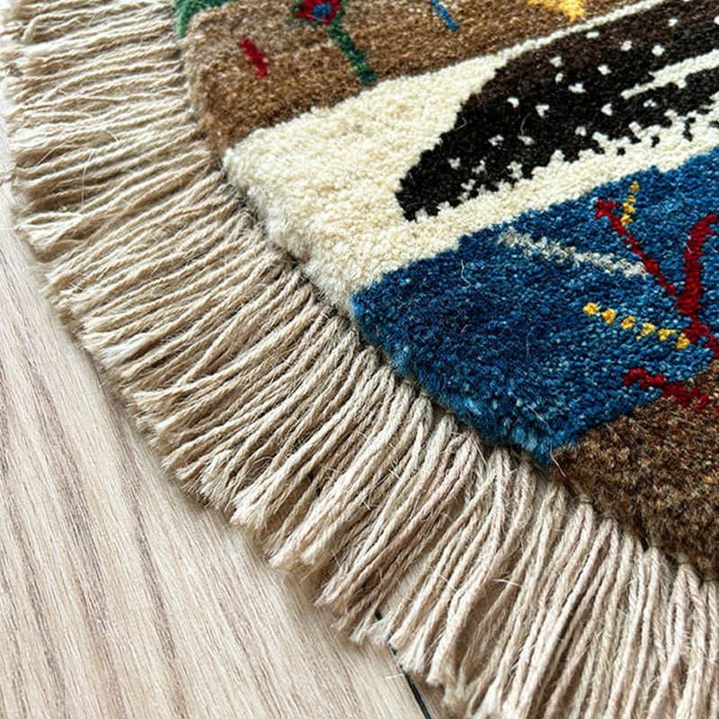 本場ペルシャよりハンドメイドギャベ・マット 世界に1枚しかない本場の逸品!【ラグモア オリジナル】<LB-10003 Majeed マジード>:約63cmラウンド