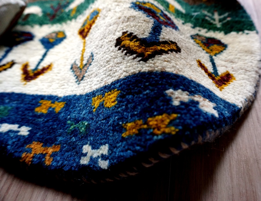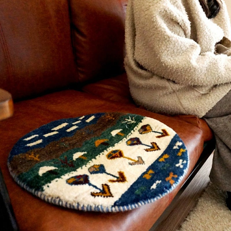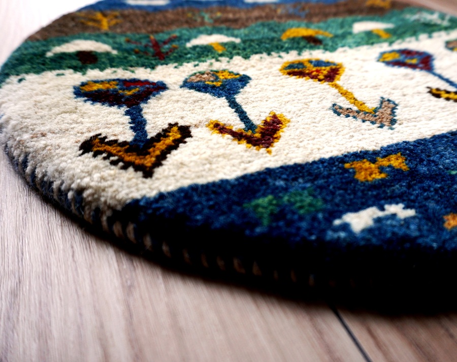 本物手織りの上質感!世界に1枚のユニークなペルシャギャッベ【円形チェアマット】<gyckel ギッケル LB3186>:円形40cm