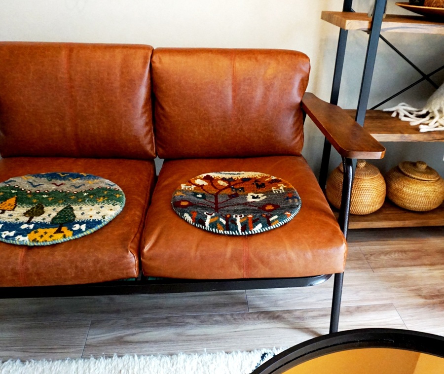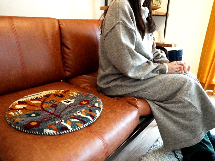 ソファの上にもダイニングチェアにもどこにでも使えるおしゃれなマットです