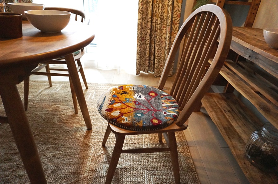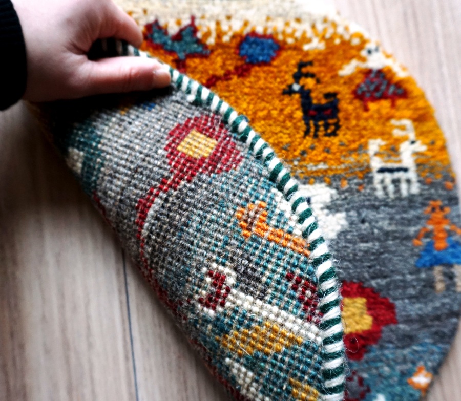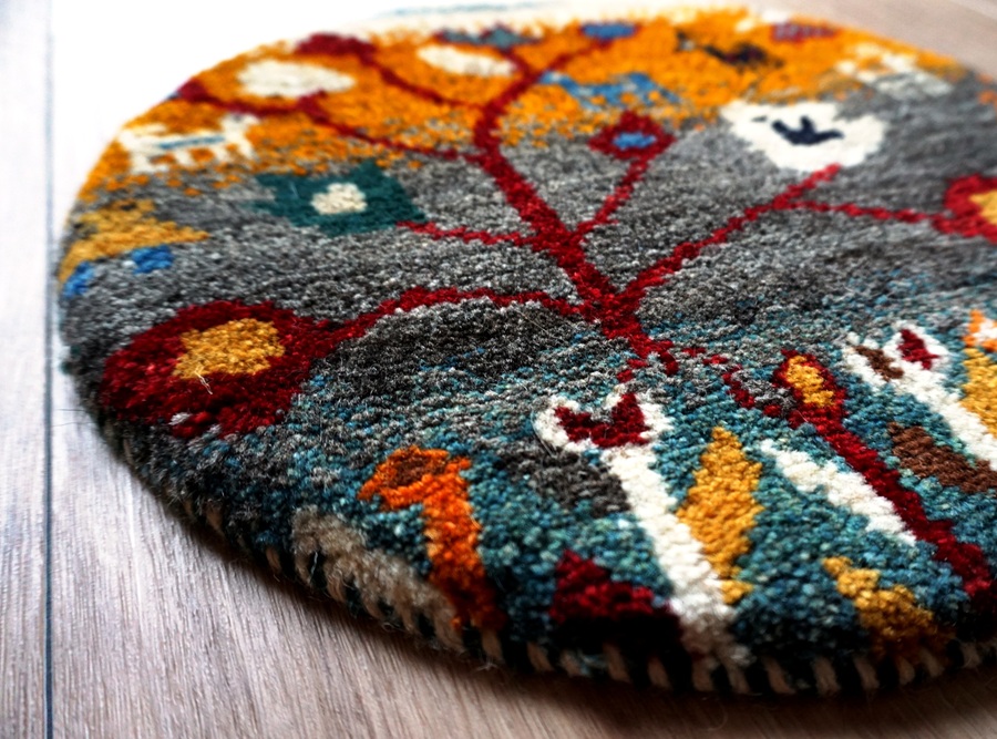 本物手織りの上質感!世界に1枚のユニークなペルシャギャッベ【円形チェアマット】<trevlig トリーブリック LB3230>:円形40cm