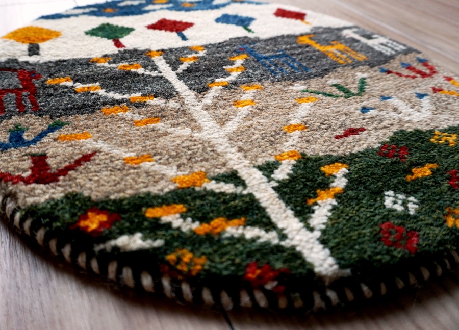 本物手織りの上質感!世界に1枚のユニークなペルシャギャッベ【円形チェアマット】<nytt ar ニットオール LB260114>:円形40cm