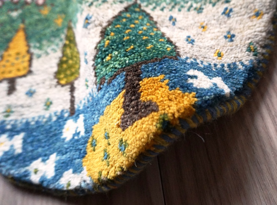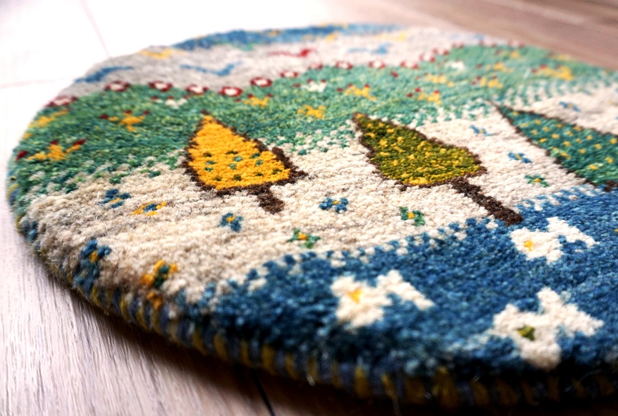 本物手織りの上質感!世界に1枚のユニークなペルシャギャッベ【円形チェアマット】<illusion イルフーン LB260126>:円形40cm