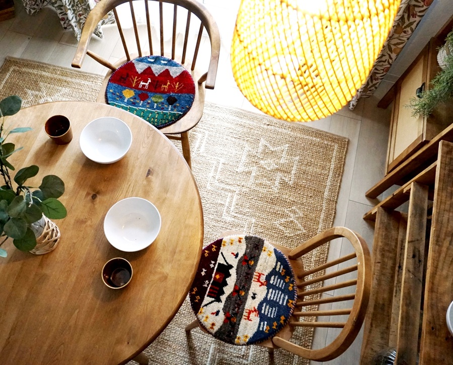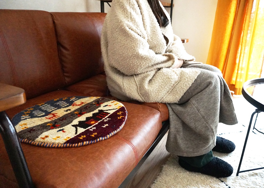 ソファの上にもダイニングチェアにもどこにでも使えるおしゃれなマットです