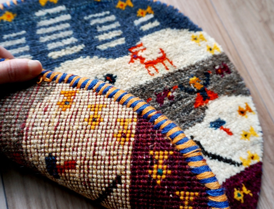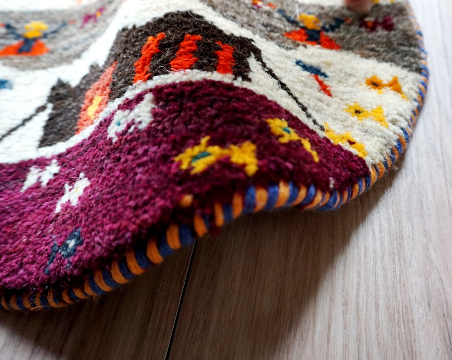 4. 本物手織りの上質感!世界に1枚のユニークなペルシャギャッベ【円形チェアマット】<Strosa runt ストローサルーン LB260128>:円形40cm