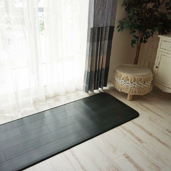 4. 大人気! 撥水・抗菌・防カビ 廊下敷きクッションフロア お手入れラクラク!!キッチンマットとしても使えます。  滑り止め付き <Chene - シエーネブラック ->80×90~940cm:86サイズ