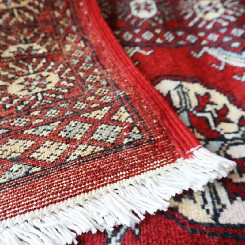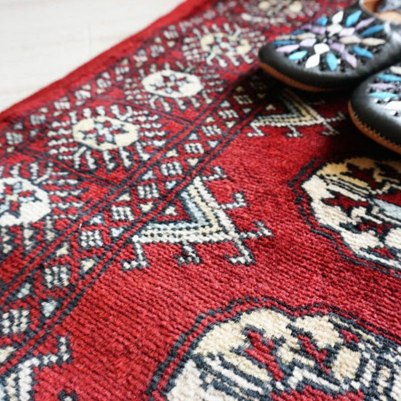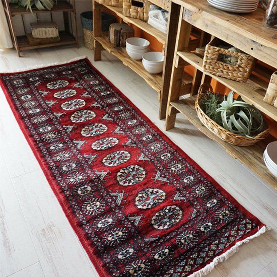 伝統的な幾何学模様が特徴的な、パキスタン段通です。ウールでありながら特殊な洗浄方法によりまるでシルクのような艶と滑らかな肌触り!