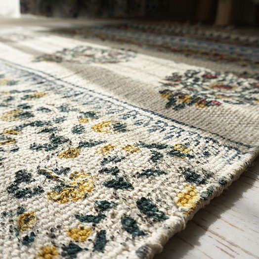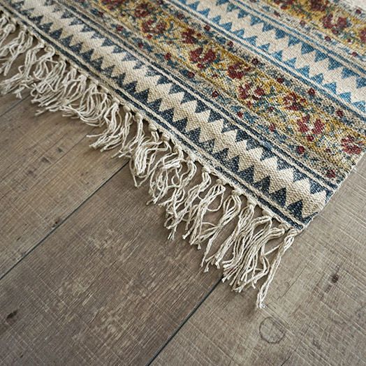 3. ナチュラルでおしゃれなデザインのブロックハンドプリントキッチンマット【HOME SWEET HOME】<block leaf ブロックリーフ>50×170cm・50×240cm:2サイズ