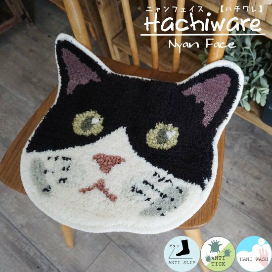 4. ネコの顔をデザインした可愛いチェアパッド<Nyanface-Hachiware ニャンフェイス-ハチワレ>