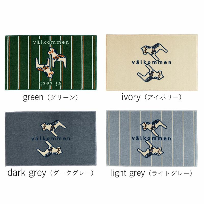 スウェーデン語の「valkommen(ようこそ)」とスウェーデンの伝統工芸「ダーラナホース」をモチーフにしたデザインマット