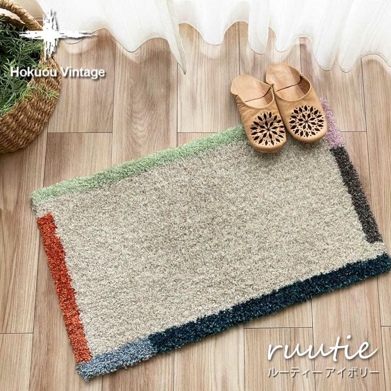 北欧テイスト玄関マット45×75cm 【北欧VINTAGE】<ruutie - ルーティー アイボリー ->