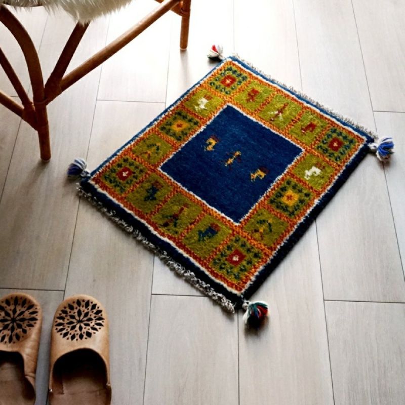 本物手織りの上質感!世界に1枚のユニークなペルシャギャッベ【チェアマット】<fami ファミ LB250532>:40×40cm