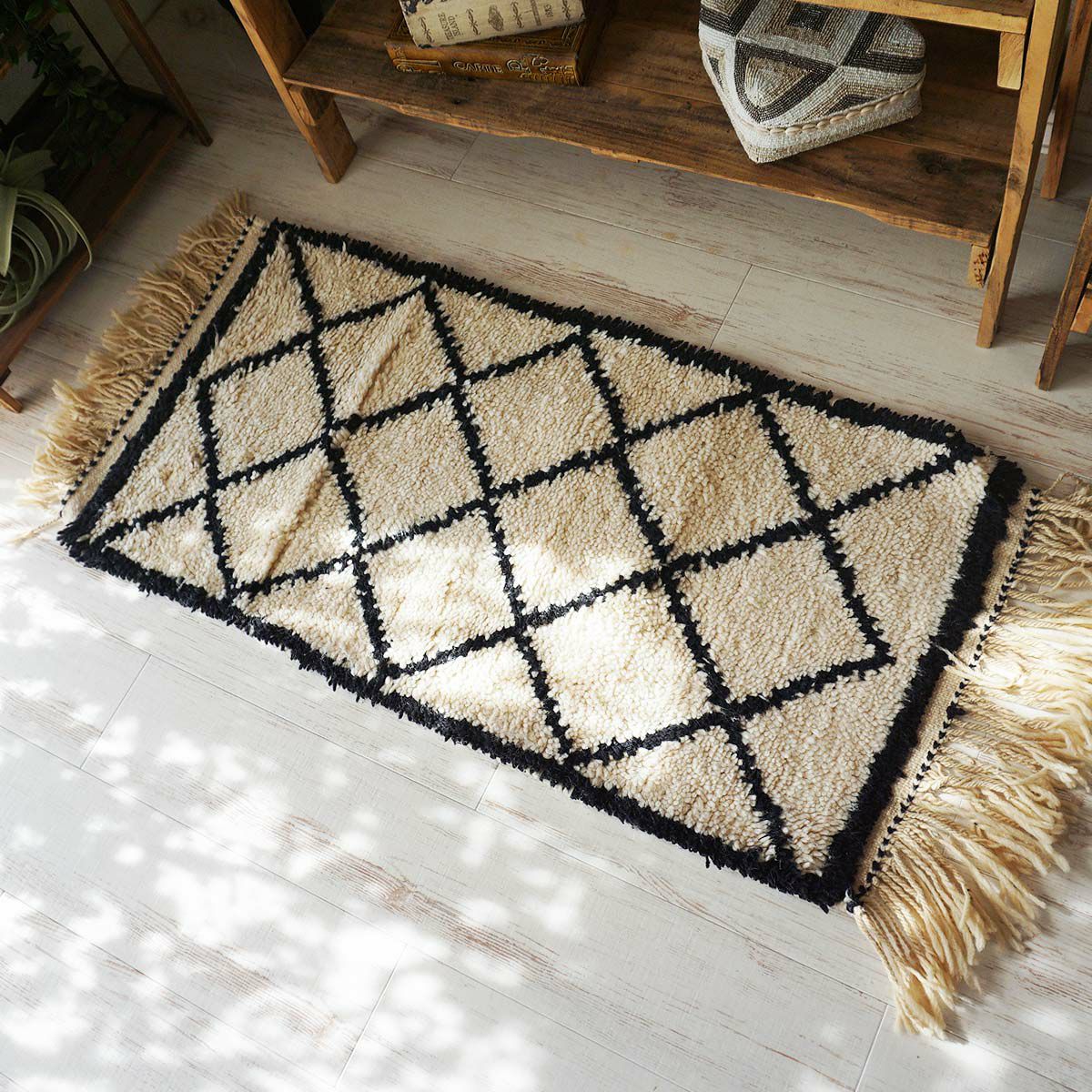 他の画像を見る オリジナル 世界に1枚だけ!モロッコ直輸入のウール100%ハンドメイドベニワレンラグ!patati-patata・本物のベニワレン<NO77 アラビアン マルテ>58×123cm 販売価格 ¥ 51,260 税込 モロッコから直輸入!大人気のウール100%手織りベニワレン! ラグモアだからできるお買い得価格!! カートに入れる お気に入りに登録する
