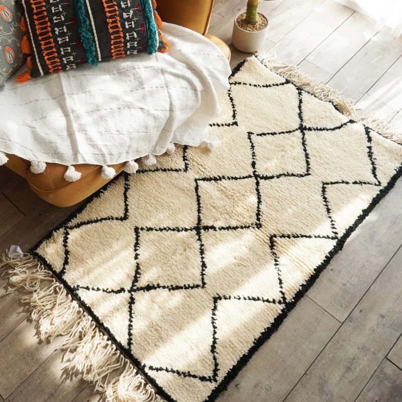 5. 世界に1枚だけ!モロッコ直輸入のウール100%ハンドメイドベニワレンラグ!patati-patata・本物のベニワレン<NO93 アラビアン アンタル>80X130cm