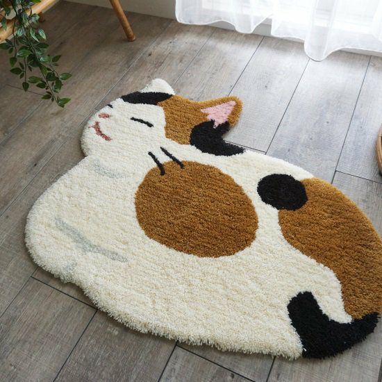 猫ちゃんのユニークな座り方をモチーフにしたアクセントラグ<Utataneko-ウタタネコ ミケ->:70x60cm