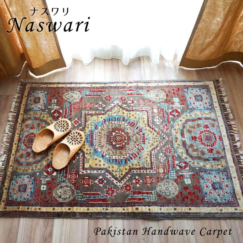 世界に1つだけの手織りパキスタン緞通<PG12ナスワリ naswari>:約131x83cm